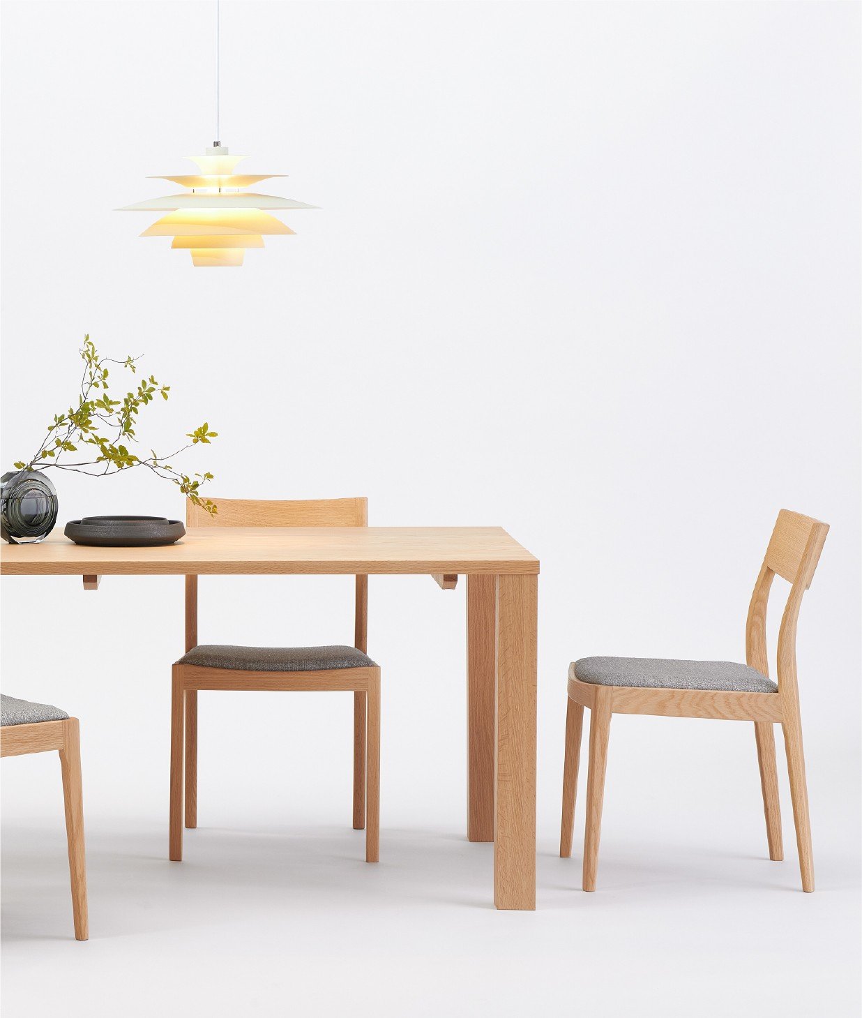 天然木の魅力を最大限に生かすために、構造を一から見直し、余分な装飾をそぎ落としました。空間にすっと馴染み、静かに存在感を放つデザインです。