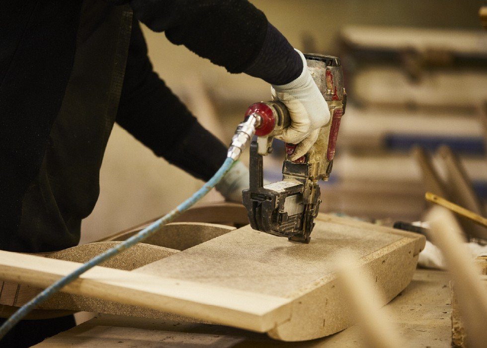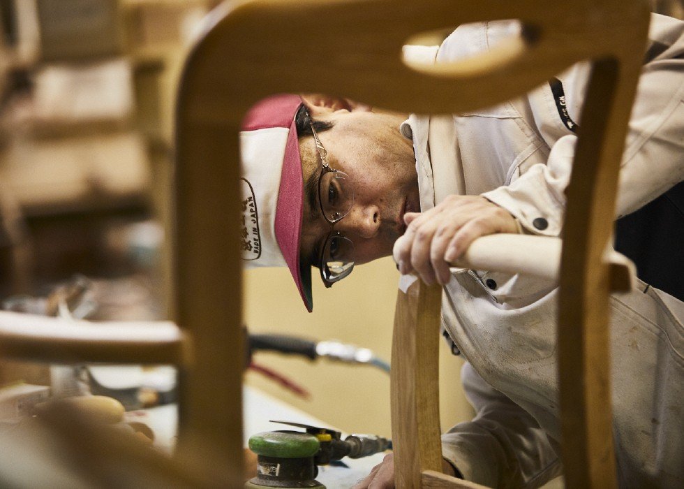 すべての工程を国内の自社工場で行い、熟練の職人が一脚ずつ丁寧に仕上げています。安心できる品質と、永く使える強度を両立しています。