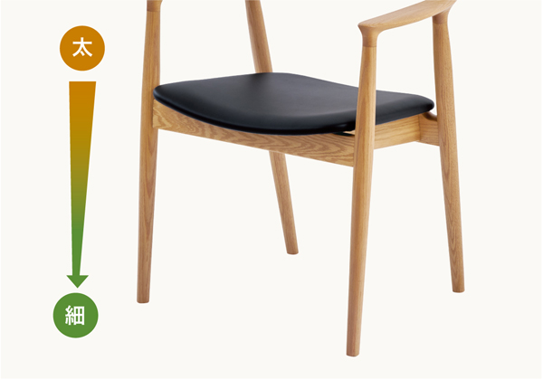 プロダクトデザイナー濱西 邦和氏が目指したのは、『素材感と職人の高い技術力を活かした』クラフトマンシップを感じるダイニングチェア。現代のデザインエッセンスと浜本工芸のものづくりの精神を込めたダイニングシリーズとなっています。