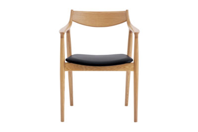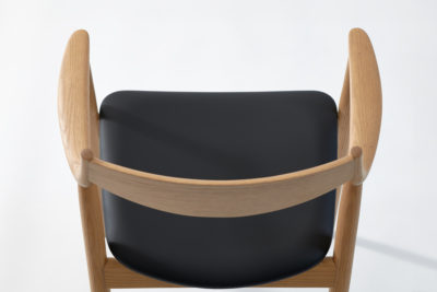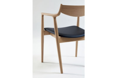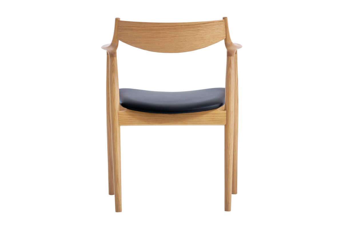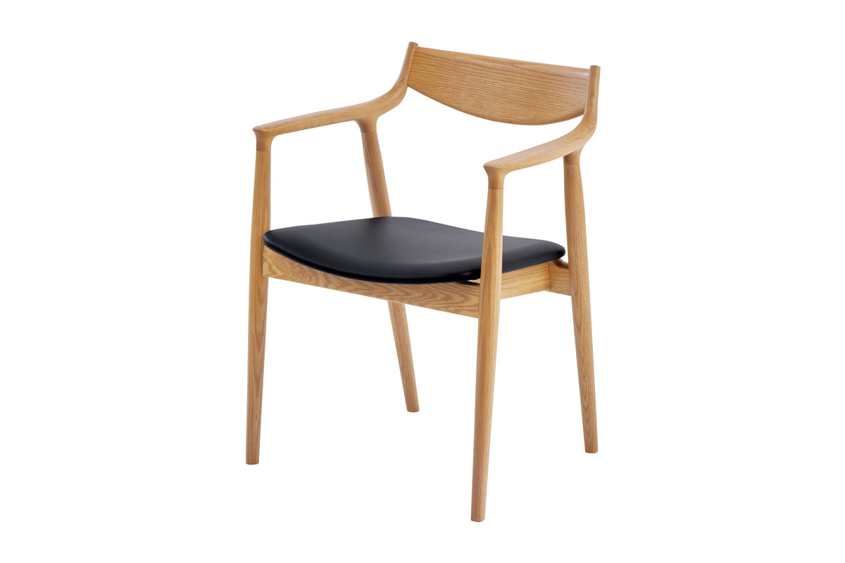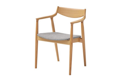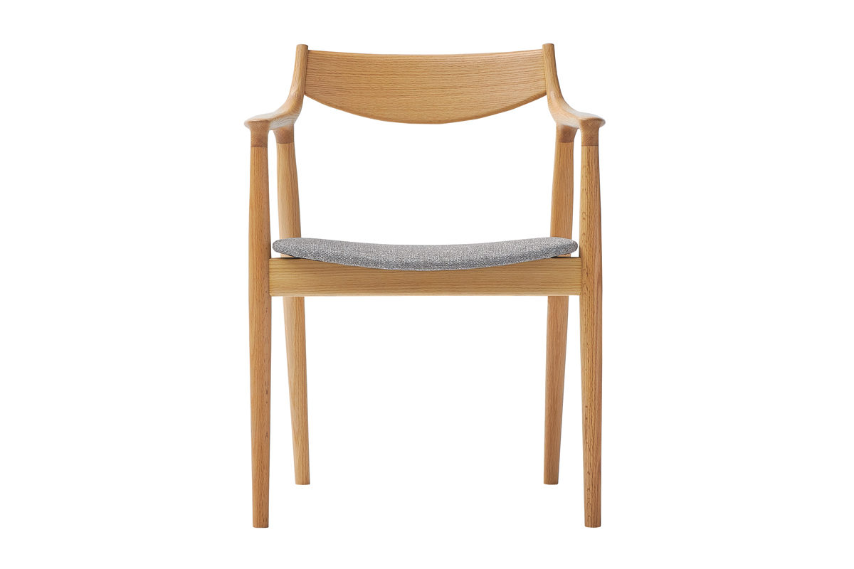 曲木加工を施した背板、複雑な曲面の形成からなる有機的な肘形状など、浜本工芸の職人の高い技術を活かしたクラフトマンシップを感じるダイニングシリーズが完成しました。チェアの肘部は腕と肘をしっかり支えるフルアーム仕様で長時間の食事やくつろぎのひとときでも快適な座り心地を実現。掴みやすく立ち座りもスムーズに行え、日常の動作を自然にサポートします。