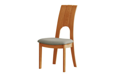 後ろ脚から背にかけて大きく湾曲した曲線が印象的なNo.7600ダイニングチェア。しっかりとした木のフレームラインは、力強くもあり、どこか愛らしさも感じるデザインで女性にも人気です。3枚の背板が背中をしっかりと支えつつ、天然木本来の美しさと暖かさを与えてくれます。