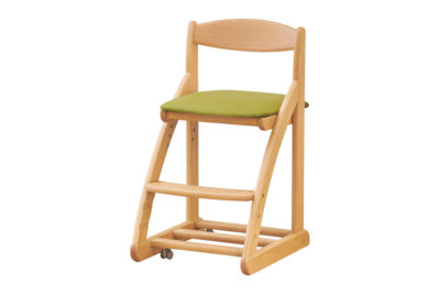曲線を活かしたやわらかな印象のデスクチェアです。座面は4段階の高さ調節と前後スライド調節ができるので、成長に即した最適な着座姿勢が保てます。また、お子さまでも動かしやすいようにキャスターを採用。座るとキャスターが沈み込む安心設計で、動かないため集中力が削がれる心配もありません。