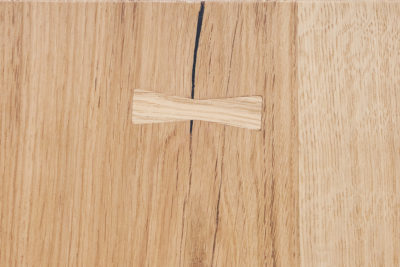天板の割れを抑えるため、『契』を入れる場合があります。割れ止めの役割と同時に、天然木の表情を引き立てるアクセントとしてもお愉しみいただけます。