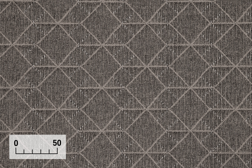 異なる2種類の糸を組み合わせ、光沢感と色の深みを表現しました。ざっくりとしたボリューム感があり、格式高い雰囲気のする布張地になっています。