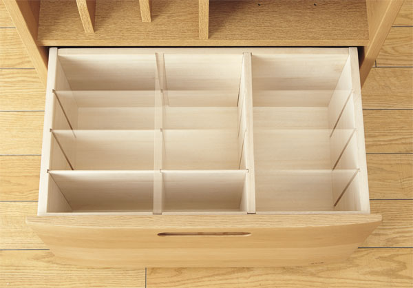 引出にスライドレールを採用しました。お子様でもスムーズに引きだすことができ、奥の物も楽に取り出しやすくなっています。