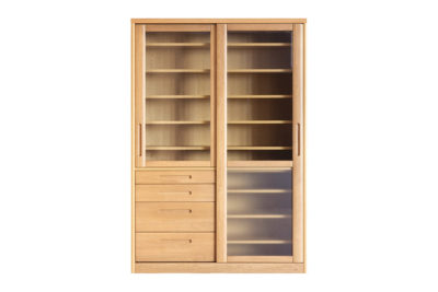 高さ1950mmと天井近くまでしっかり収納スペースとして使える大容量のハイタイプボードです。扉の大部分がガラスでありながらも、木質感に溢れたデザインが上質で柔らかな空間を演出。上箱中央部分の仕切板をなくし、整理整頓に便利なH型仕切板を付属するなど、豊富な機能がダイニングの快適性を向上させてくれます。