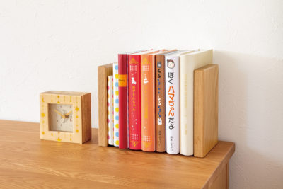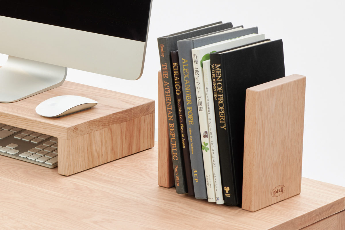 ナラ無垢材でつくった浜本工芸らしいシンプルなブックエンドです。ブックエンドを使用することで、手の届きやすいデスク上に教材を立てて置くことができ、収納量の変化にも柔軟に対応できます。