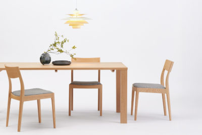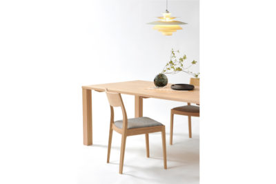 無垢材のもつ強さと穏やかさを大切に、素材の美しさをそのままに生かしました。シンプルで洗練されたフォルムと、つなぎ目を感じさせない一体感のある佇まいが、空間にやさしく調和します。
