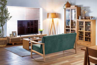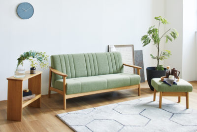 コンパクトな奥行きながら、快適な座り心地を実現しました。肘木にナラ無垢の一枚板を使用しているのでひとつひとつ表情が異なります。また、女性でも移動させやすい軽さも魅力です。