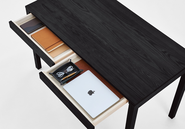 天板下には小物の収納に便利な引出しを備えています。文具やノートなどをすっきりと収納でき、デスク周りをきれいに保つことができます。