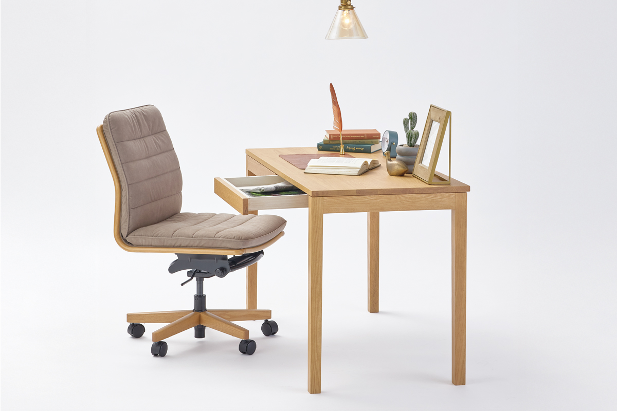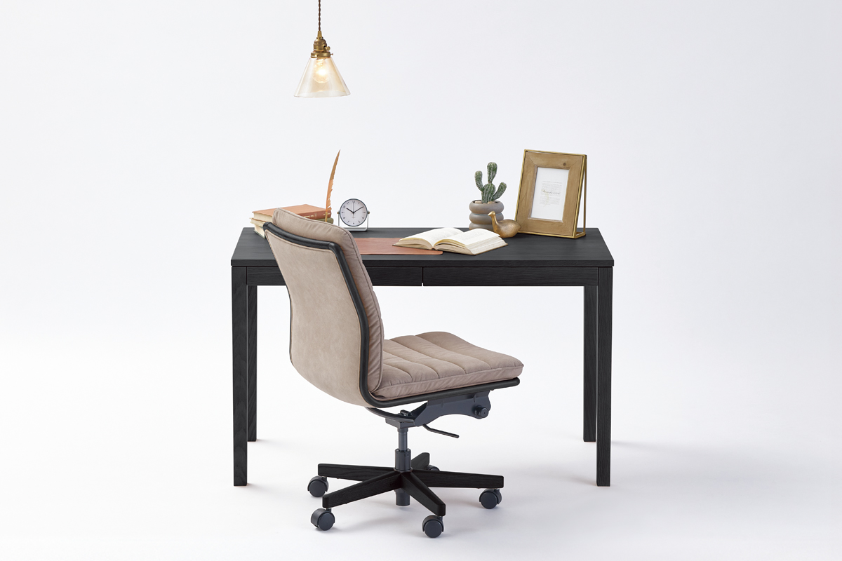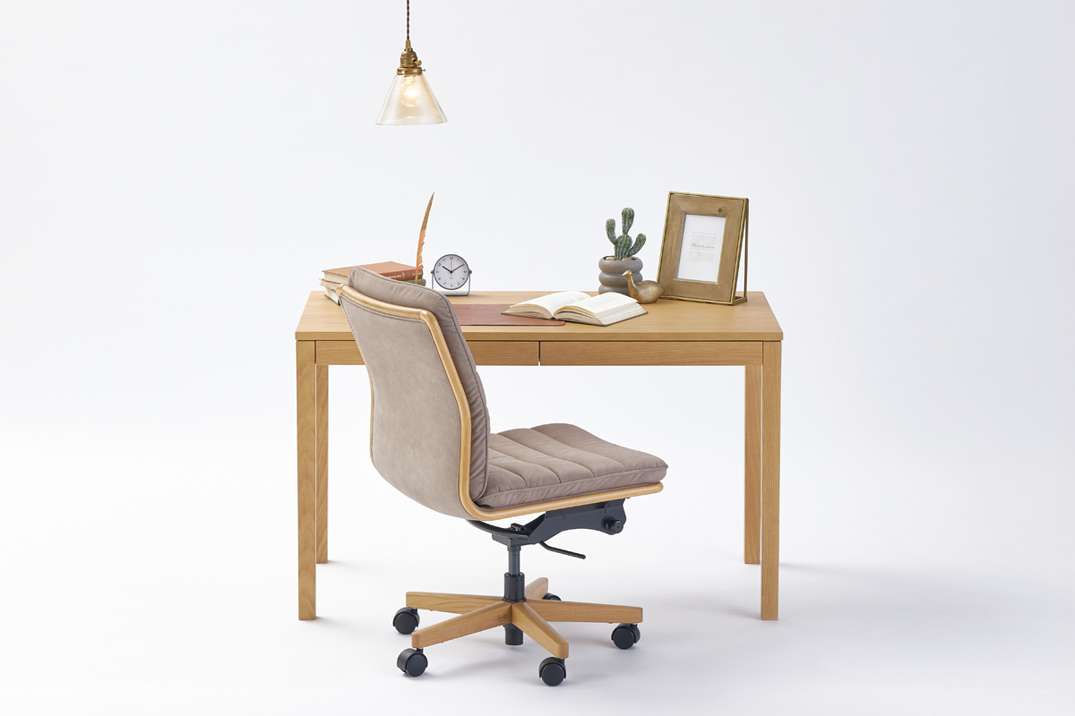 幅100・110・120cmの3サイズから選べるため、お部屋の広さや用途に合わせて設置できます。天板下には小物の収納に便利な引出しを備え、デスク周りをすっきりと整理できます。デスク本体にはコンセントやケーブルトレーの取付が可能で、配線も整った快適なワークスペースをつくります。