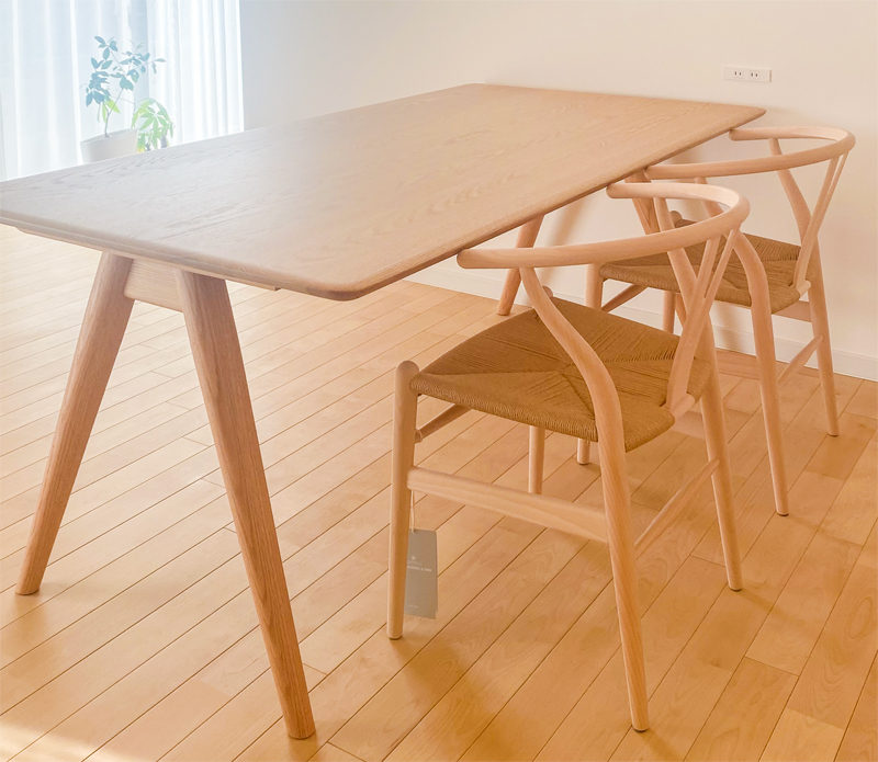 新築にダイニングテーブルをお迎えしました!セレクトショップの中で色々なダイニングテーブルを見させていただきましたが、フォルムも色味も素材感も全て好みにあったのがこのダイニングテーブルでした!見た目だけではなく、学習机で有名なこともありながーく使える長所もたくさん持ち合わせていることも知りました。一生物の家具として大切に使っていきたいとおもいます!