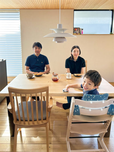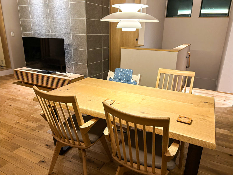 新築のタイミングで家具を探していたとき、吉祥寺の東急で浜本工芸さんのダイニングテーブルに一目惚れしました。その後、ハウスメーカーの家具のイベントに行き、様々な家具を検討しましたが、価格面・品質面で最も納得できたのが浜本工芸さんの家具でした。当初はダイニングセットだけの予定でしたが、空間に統一感をもたせたくてソファやサイドテーブル、テレビボードも揃えました。ソファはカバーを外して洗えるので、子どもが飲み物をこぼしても清潔に使えるのが嬉しいです。テーブルもUV塗装されているので、無垢材でも汚れを拭き取りやすく、毎日の食事で気兼ねなく使えます。チェアはショートアームタイプを選んだことで出入りがしやすく、使い勝手の良さを感じています。子供が成長し学習机が必要になれば、浜本工芸で購入したいと考えています。職人のみなさま、ショールームのみなさま、浜本工芸社員の方々、良い製品を創っていただき、ありがとうございます。