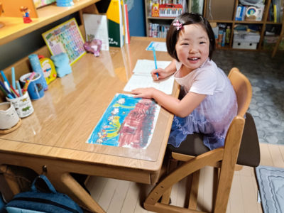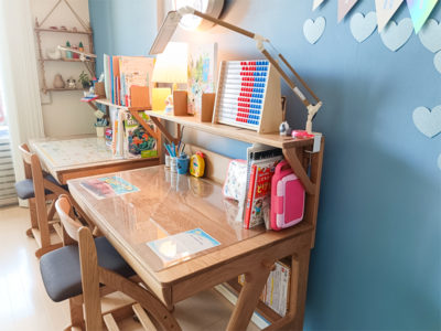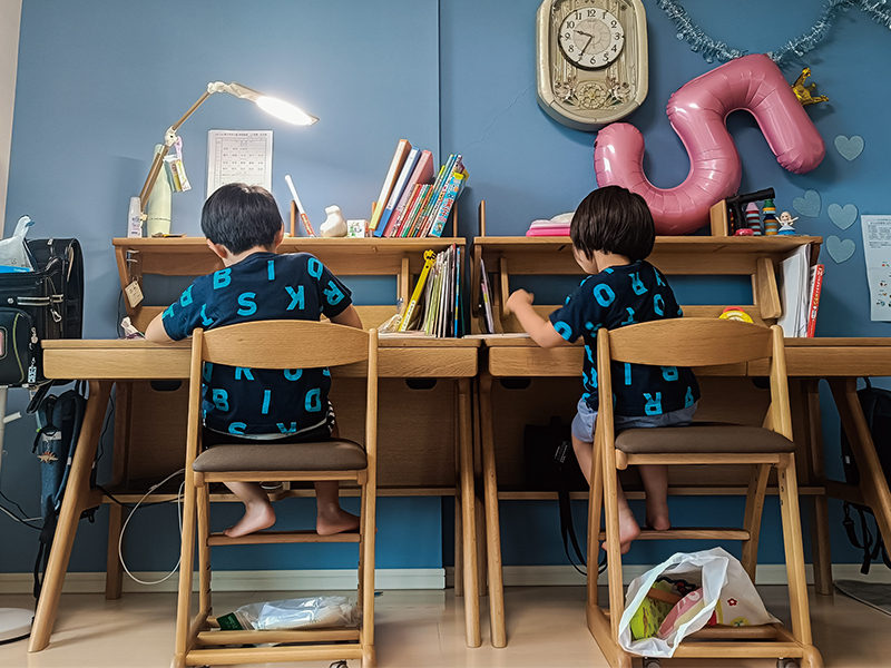 浜本工芸の学習デスクで、家族みんなで学び合う時間を楽しんでいます。<Y様/茨城県>